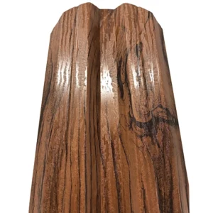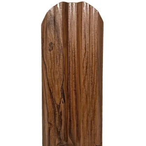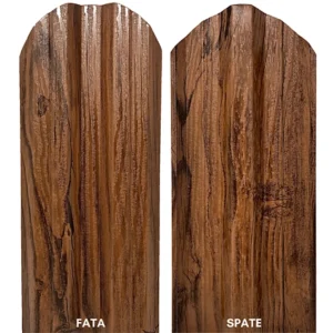 Fabricate din tablă de oțel zincat pe ambele fețe, acestea sunt protejate împotriva coroziunii și acoperite cu un strat rezistent de vopsea polimerică, conferindu-le durată de viață îndelungată. Forma semi-rotundă și textura ce imită lemnul de nuc adaugă un aspect elegant și natural fiecărui gard.