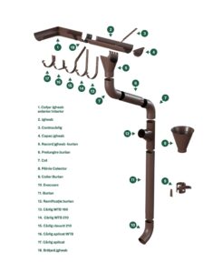 Disponibil în toată gama de culori RAL, sistemul pluvial poate fi integrat estetic în designul clădirii, păstrând armonia vizuală. Fabricat din materiale rezistente la coroziune și intemperii, asigură o durată de viață îndelungată și întreținere minimă.